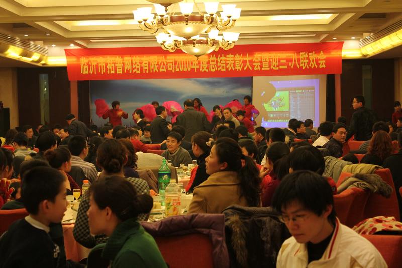 春風(fēng)送福,玉兔報(bào)喜!2011年2月19日,一年一度的年度總結(jié)表彰大會(huì)暨迎三.八婦女節(jié)聯(lián)歡晚會(huì)在陶然居大酒店隆重舉行。除公司全體員工外,晚會(huì)還特邀了臨沂市有關(guān)部門領(lǐng)導(dǎo)、一大批合作客戶、戰(zhàn)略伙伴、以及部分員工家屬出席。 下午1點(diǎn)半,大會(huì)正式開始。首先由張金剛經(jīng)理宣讀2010年度獲得獎(jiǎng)勵(lì)的優(yōu)秀團(tuán)隊(duì)和個(gè)人,接著是3.8紅旗手代表、優(yōu)秀服務(wù)代表、業(yè)務(wù)標(biāo)兵代表、工程質(zhì)量標(biāo)兵代表、優(yōu)秀員工代表、優(yōu)秀團(tuán)隊(duì)代表、新員工代表逐一上臺(tái)作激昂澎湃發(fā)言;最后是公司總經(jīng)理王總作2010年度工作總結(jié)報(bào)告,并對(duì)2011年工作給予部署。首先王總對(duì)公司這一年來所取得的成績(jī)給予了充分肯定,特別是對(duì)勤勉務(wù)實(shí)、兢兢業(yè)業(yè)的全體拓普人給予高度贊賞。同時(shí)王總對(duì)公司新的一年發(fā)展寄予了厚望,寄望全體拓普人在新的一年里要團(tuán)結(jié)一心,繼續(xù)發(fā)揚(yáng)不怕苦、不怕累、勇于進(jìn)取、勇于奉獻(xiàn)的精神,為公司發(fā)展更好更快作出積極的努力 。