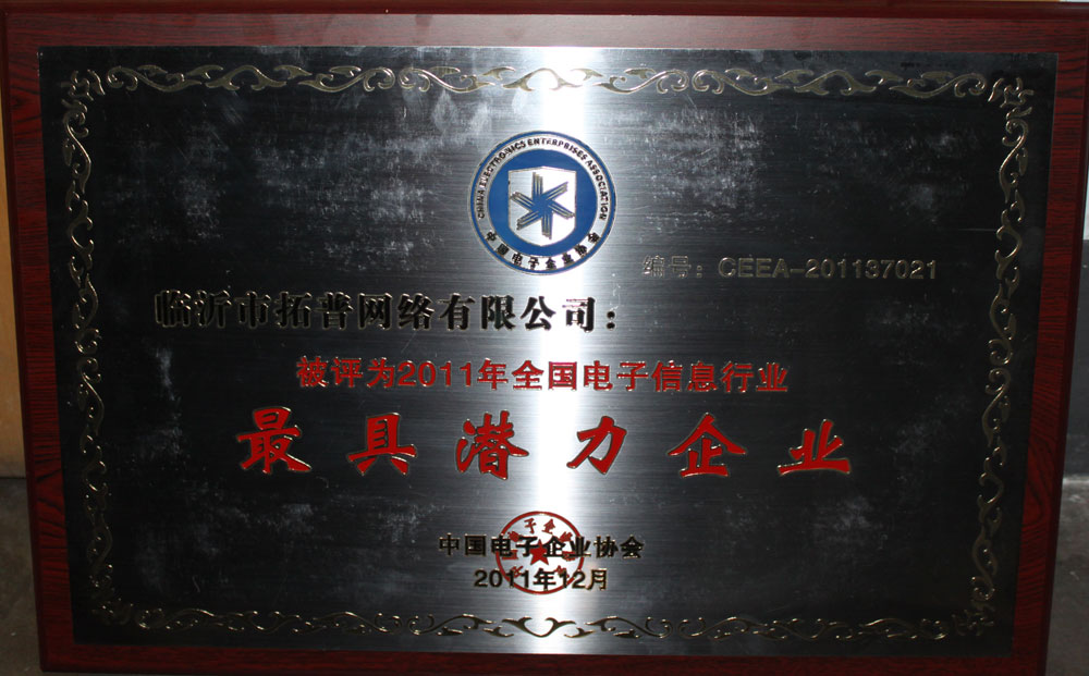| 熱烈祝賀我公司被評為“2011年全國電子信息行業(yè)優(yōu)秀企業(yè)”最具潛力企業(yè) |