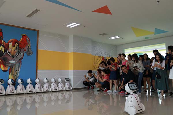 (記者團(tuán)參觀高科技互動(dòng)體驗(yàn)區(qū)) 記者團(tuán)一行跟隨園區(qū)工作人員先后參觀了一樓展廳內(nèi)的研發(fā)中心、臨沂市大數(shù)據(jù)中心、創(chuàng)客教育實(shí)踐基地、山東省智慧教育創(chuàng)客活動(dòng)中心高科技互動(dòng)體驗(yàn)區(qū)和綜合實(shí)踐區(qū)等地,工作人員向記者們詳細(xì)介紹了拓普網(wǎng)絡(luò)股份有限公司發(fā)展現(xiàn)狀、所獲榮譽(yù)、園區(qū)入駐企業(yè)、智慧教育云平臺(tái)建設(shè)運(yùn)營等基本情況,并向記者們描繪了園區(qū)關(guān)于未來對臨沂智慧城市的構(gòu)想。