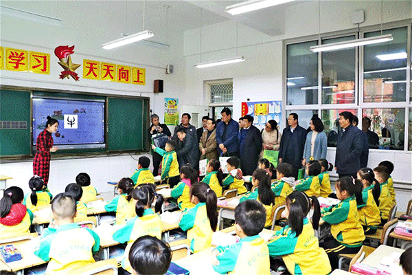 活動共分為基礎(chǔ)教育信息化應(yīng)用現(xiàn)場觀摩及匯報(bào)交流兩種形式。在上午的現(xiàn)場觀摩活動中,在市教育局局長尹傳斌的陪同下,省教育廳一級巡視員張志勇等人先后到訪臨沂市樸園小學(xué)和臨沂市外國語學(xué)院視察我市基礎(chǔ)教育信息化應(yīng)用情況。在臨沂市樸園小學(xué),張志勇同志一行來到一年級與部分老師交流,并進(jìn)入課堂聽課,深入了解教師在備課、上課中對智慧教育云平臺的應(yīng)用情況?,F(xiàn)場人員還觀摩了基于智慧教育云平臺的學(xué)生體質(zhì)健康監(jiān)測系統(tǒng)的應(yīng)用展示以及各縣區(qū)基礎(chǔ)教育信息化應(yīng)用成果的集中展示,來自全省十七地市的教研骨干們紛紛對我市教育系統(tǒng)以拓普公司智慧教育產(chǎn)品“拓普智慧教育云平臺”為核心開展的基礎(chǔ)教育信息化應(yīng)用建設(shè)所取得的成就贊不絕口。