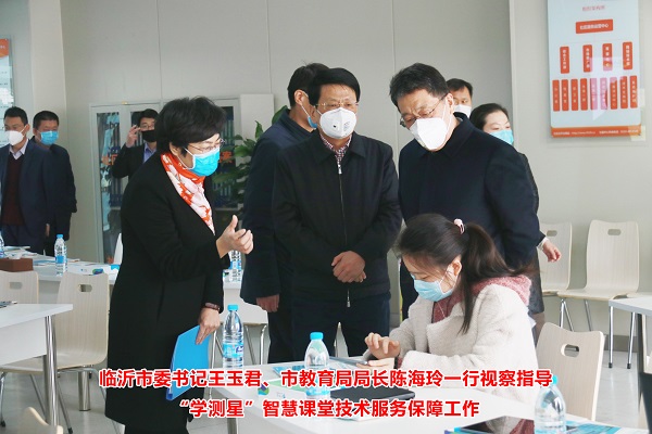 2月1日下午,臨沂市委書記王玉君、臨沂市教育局局長(zhǎng)陳海玲到國(guó)家中印科技國(guó)際創(chuàng)新園視察指導(dǎo)疫情防控工作,并察看了“學(xué)測(cè)星”智慧課堂(www.xxbj.cn)的運(yùn)行情況。王書記指出,在假期期間,教育相關(guān)部門和企業(yè),要切實(shí)做好服務(wù)保障工作,發(fā)揮“學(xué)測(cè)星”智慧課堂免費(fèi)開放的優(yōu)勢(shì),確保為廣大師生提供假期學(xué)習(xí)服務(wù),真正實(shí)現(xiàn)停課不停學(xué)!