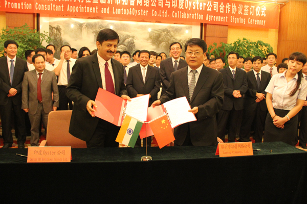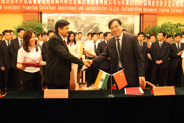2013年7月20日,“臨沂經(jīng)濟技術(shù)開發(fā)區(qū)管委會招商顧問聘任暨臨沂市拓普網(wǎng)絡(luò)公司與印度Oyster公司合作協(xié)議簽訂儀式”在開發(fā)區(qū)會議室隆重舉行。在儀式上,市人大常委會副主任、開發(fā)區(qū)黨工委書記徐福田為Oyster公司總經(jīng)理Anil Nagpal先生頒發(fā)招商顧問聘書,黨工委副書記張雷與Anil Nagpal簽訂委托招商協(xié)議,公司總經(jīng)理王嵐保與Oyster公司總經(jīng)理Anil Nagpal簽訂戰(zhàn)略合作協(xié)議,開發(fā)區(qū)在家兩委領(lǐng)導(dǎo)出席儀式。