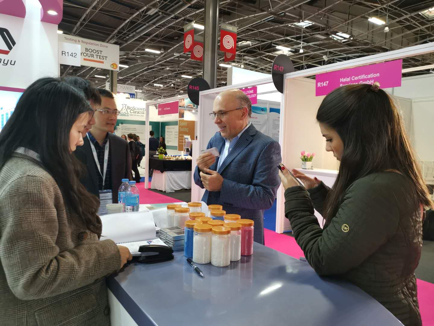 The export department of Shanghai youyang industry co., LTD. Participated in the in-cosmetics Amsterdam exhibition of cosmetics ingredients in Europe in 2019.