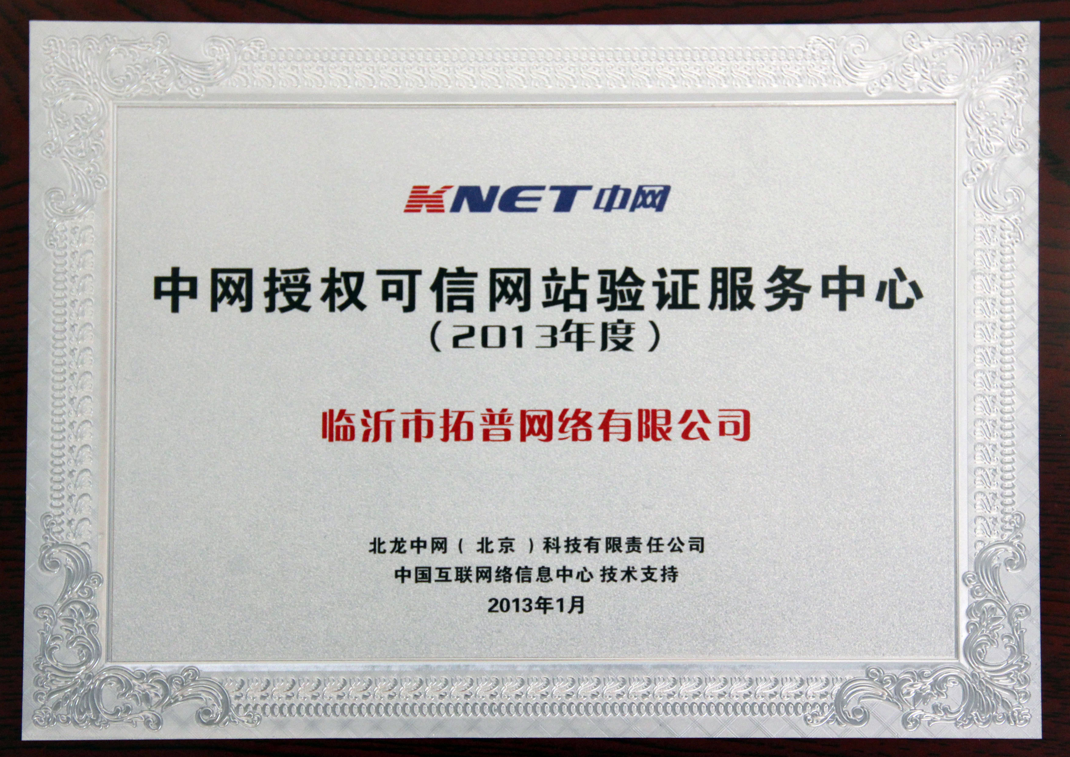 2013年度中網(wǎng)授權(quán)可信網(wǎng)站驗(yàn)證服務(wù)中心