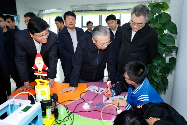2018年11月,山東省委書記劉家義,赴中印硅谷-創(chuàng)客研學(xué)基地與參加研學(xué)活動的孩子們進(jìn)行交流,了解活動的開展情況。 |