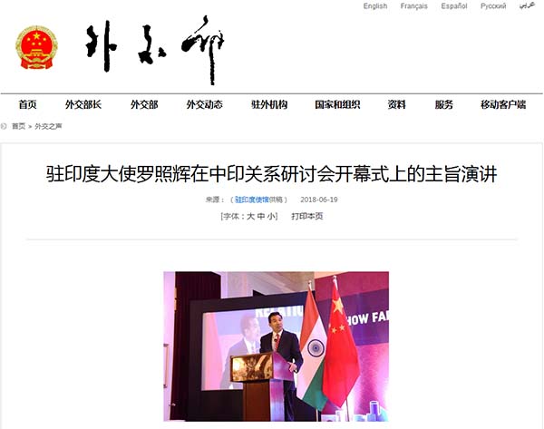 就在本月18日,中國(guó)駐印度使館在新德里與印度中國(guó)研究所、印度工商聯(lián)合會(huì)、印度外事記者協(xié)會(huì)、南亞外國(guó)記者俱樂(lè)部合作舉辦了題為“后武漢時(shí)期:中印關(guān)系愿景與速度”的研討會(huì),探討中印關(guān)系未來(lái)發(fā)展前景。中國(guó)駐印度大使羅照輝、印度國(guó)家轉(zhuǎn)型委員會(huì)秘書(shū)長(zhǎng)康德出席開(kāi)幕式并發(fā)表主旨演講(點(diǎn)擊查看演講原文)。