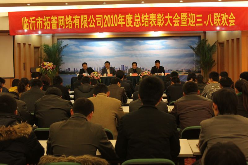 春風(fēng)送福,玉兔報(bào)喜!2011年2月19日,一年一度的年度總結(jié)表彰大會(huì)暨迎三.八婦女節(jié)聯(lián)歡晚會(huì)在陶然居大酒店隆重舉行。除公司全體員工外,晚會(huì)還特邀了臨沂市有關(guān)部門領(lǐng)導(dǎo)、一大批合作客戶、戰(zhàn)略伙伴、以及部分員工家屬出席。 下午1點(diǎn)半,大會(huì)正式開始。首先由張金剛經(jīng)理宣讀2010年度獲得獎(jiǎng)勵(lì)的優(yōu)秀團(tuán)隊(duì)和個(gè)人,接著是3.8紅旗手代表、優(yōu)秀服務(wù)代表、業(yè)務(wù)標(biāo)兵代表、工程質(zhì)量標(biāo)兵代表、優(yōu)秀員工代表、優(yōu)秀團(tuán)隊(duì)代表、新員工代表逐一上臺(tái)作激昂澎湃發(fā)言;最后是公司總經(jīng)理王總作2010年度工作總結(jié)報(bào)告,并對(duì)2011年工作給予部署。首先王總對(duì)公司這一年來所取得的成績(jī)給予了充分肯定,特別是對(duì)勤勉務(wù)實(shí)、兢兢業(yè)業(yè)的全體拓普人給予高度贊賞。同時(shí)王總對(duì)公司新的一年發(fā)展寄予了厚望,寄望全體拓普人在新的一年里要團(tuán)結(jié)一心,繼續(xù)發(fā)揚(yáng)不怕苦、不怕累、勇于進(jìn)取、勇于奉獻(xiàn)的精神,為公司發(fā)展更好更快作出積極的努力 。