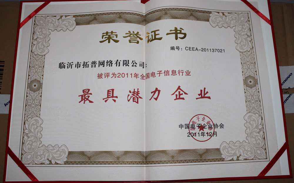 | 熱烈祝賀我公司被評為“2011年全國電子信息行業(yè)優(yōu)秀企業(yè)”最具潛力企業(yè) |