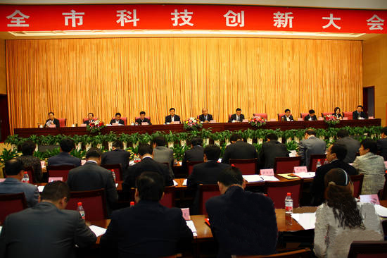 為進(jìn)一步加強(qiáng)科技創(chuàng)新,推動產(chǎn)業(yè)轉(zhuǎn)型升級,11月1日上午,臨沂市科技創(chuàng)新大會隆重召開,會議對2011年度全市科技創(chuàng)新工作先進(jìn)單位和2011年度科學(xué)技術(shù)獎的獲獎組織及個人進(jìn)行表彰。市委書記張少軍、市長張務(wù)峰發(fā)表重要講話,市領(lǐng)導(dǎo)徐濤、杜德昌、李峰、左沛廷、尹長友、李剛、關(guān)華、林國華、李沂明、侯曉濱等出席會議。 張少軍在講話中指出,近年來,臨沂市認(rèn)真貫徹落實科學(xué)發(fā)展觀,深入實施科教興市、人才強(qiáng)市戰(zhàn)略,圍繞傳統(tǒng)產(chǎn)業(yè)轉(zhuǎn)型升級和戰(zhàn)略性新興產(chǎn)業(yè)發(fā)展,著力提高自主創(chuàng)新能力,深化科技交流合作,推進(jìn)科技成果轉(zhuǎn)化運用,科技對經(jīng)濟(jì)社會發(fā)展的支撐能力顯著提高。產(chǎn)學(xué)研合作反面進(jìn)展突出,特別是以臨沂市拓普網(wǎng)絡(luò)有限公司、常林集團(tuán)等企業(yè)為代表,先后引進(jìn)了近百名國外高端人才,為經(jīng)濟(jì)社會發(fā)展提供了強(qiáng)大智力支撐。 張務(wù)峰市長就臨沂市縣域經(jīng)濟(jì)發(fā)展?fàn)顩r、當(dāng)前宏觀經(jīng)濟(jì)形勢等背景,強(qiáng)調(diào)科技創(chuàng)新在“三年倍增、五年跨越”和“過四五、雙翻番”奮進(jìn)目標(biāo)當(dāng)中的作用----加快培植主導(dǎo)產(chǎn)業(yè)、加快壯大骨干企業(yè)、加快培育新的經(jīng)濟(jì)增長點,都迫切需要科技創(chuàng)新的引領(lǐng)和支撐。