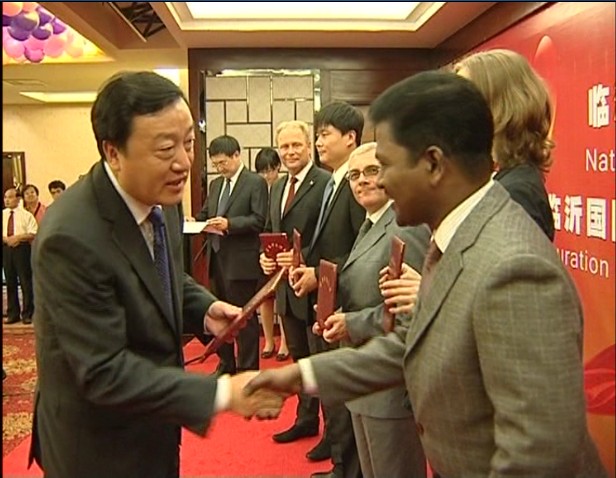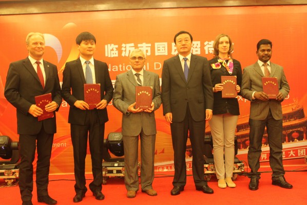 9月28日,臨沂市國慶招待會暨臨沂國際友人俱樂部成立大會在陶然居隆重舉行,市委書記、市人大常委會主任張少軍致辭,市委副書記、市長張務鋒為獲得“臨沂市榮譽市民”稱號的外國友人頒發(fā)證書,張少軍和張務鋒共同為臨沂國際友人俱樂部揭牌。林國華、李沂明、徐福田、孫豐剛、邊峰、王曉嫚、譚慶功等領導同志出席。 拓普網(wǎng)絡公司印度籍專家Babu先生榮膺“臨沂市榮譽市民”,這體現(xiàn)了拓普公司崇尚知識、尊重人才的做法,贏得了市委、市政府的肯定。 拓普網(wǎng)絡公司的印度籍專家以一場原汁原味的印巴風情舞蹈為本次宴會拉開帷幕,贏得陣陣喝彩,各國友人也紛紛以自己的方式為本次活動獻上精彩演出。 臨沂市拓普網(wǎng)絡有限公司公司歷來注重人才引進,大力實施“人才興企”戰(zhàn)略,去年至今,陸續(xù)從印度引入近40位高端人才,這在全省軟件行業(yè)當中都是絕無僅有的,彰顯了公司敢為人先的魄力,以及走向國際化的決心。印度籍專家團隊的到來,不僅增強了公司內(nèi)部的研發(fā)實力,也提升了企業(yè)的外在形象。