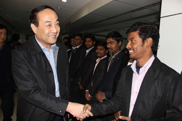 叢局長一行在會議室認(rèn)真聽取了王總對公司發(fā)展?fàn)顩r、中印軟件產(chǎn)業(yè)園的建設(shè)以及印度專家的引進情況的介紹。叢局長與印度專家BABU進行了親密交談,對他們能來中國工作表示感謝,希望他們能真正適應(yīng)這里的工作和生活。