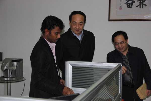 叢局長與印度專家一一握手 叢局長與公司王總親切交流 參觀研發(fā)中心