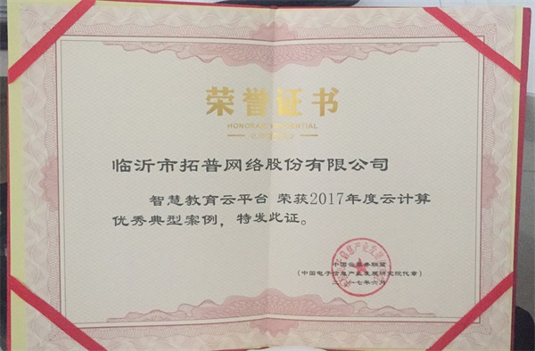 | 熱烈祝賀智慧教育云平臺(tái)榮獲2017年度云計(jì)算優(yōu)秀典型案例 |