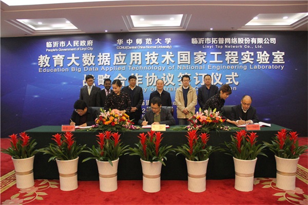國(guó)家中印科技國(guó)際創(chuàng)新園“山東省教育信息化應(yīng)用培訓(xùn)基地”在臨沂揭牌,臨沂市政府、華中師范大學(xué)、臨沂市拓普網(wǎng)絡(luò)股份有限公司三方成功舉行了“教育大數(shù)據(jù)應(yīng)用技術(shù)國(guó)家工程實(shí)驗(yàn)室”戰(zhàn)略合作協(xié)議簽訂儀式。