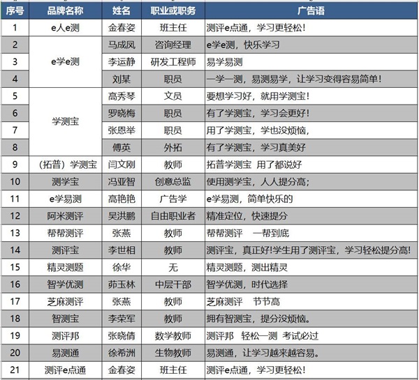 | 拓普學業(yè)測評系統(tǒng)名稱及廣告語有獎征集活動“入圍獎”名單公示 |