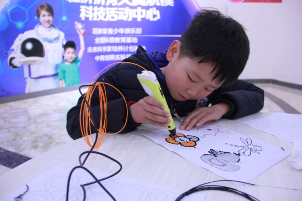 在3D打印智慧教育創(chuàng)客課堂,學(xué)生和家長們被一支神奇的3D打印筆吸引,它堪比馬良手中的神筆,在專業(yè)3D創(chuàng)客老師的講解下,它不僅能“紙上生花”,還能讓埃菲爾鐵塔模型躍然眼前,孩子們在科普學(xué)習(xí)中忙得不亦樂乎。在VR世界,孩子們帶著VR眼鏡,在虛擬的世界里盡情享受高科技帶來的賽車駕駛、單車、民航模擬飛行體驗……在臨沂智慧教育創(chuàng)客活動中心將現(xiàn)代信息技術(shù)與教育實踐融合的課堂里,不僅能讓學(xué)生享受到科技生活帶來的樂趣,更能讓學(xué)生在動手動腦中獲得多面發(fā)展。
