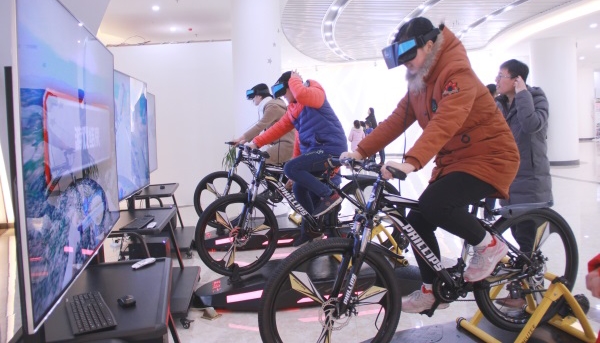 體驗(yàn)vr自行車 在自行車體驗(yàn)區(qū),孩子們帶上VR眼鏡,雖然腳下的車輪飛轉(zhuǎn),但卻原地在一個(gè)虛擬的世界里完成了一趟千米騎行。騎行過程不僅有美麗的風(fēng)景,更是充滿了危險(xiǎn)路段的驚險(xiǎn)刺激,孩子們玩得滿頭大汗,游戲中更是不忘邀請(qǐng)爸爸媽媽和他們一起體驗(yàn)高科技帶來(lái)新奇感。 一上午的參觀時(shí)間雖然短暫,但大家卻在親子活動(dòng)中一起享受了家庭溫馨,更是體驗(yàn)了高科技帶給我們學(xué)習(xí)以及生活的改變。