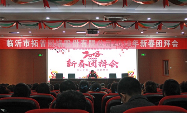 2018年2月22日,新春工作的第一天,臨沂市拓普網(wǎng)絡(luò)股份有限公司2018年新春團(tuán)拜會在國家中印科技國際創(chuàng)新園報告廳成功召開。