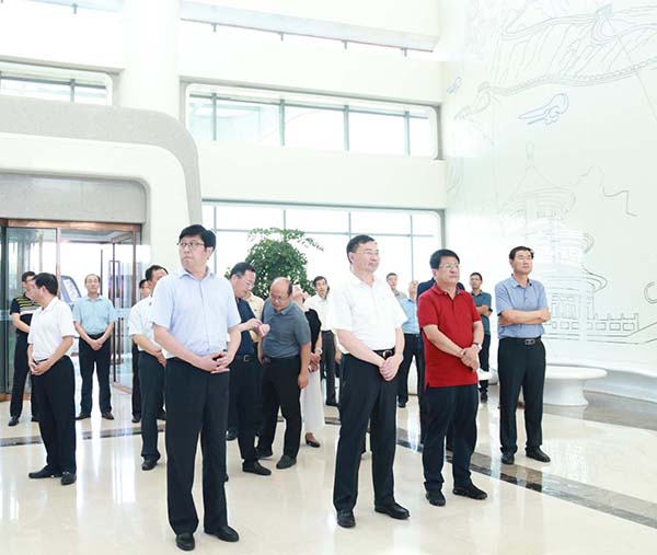 2018年6月28日,日照經(jīng)濟技術(shù)開發(fā)區(qū)工委書記杜江濤一行到國家中印科技國際創(chuàng)新園參觀考察,市政府黨組成員、開發(fā)區(qū)黨工委書記、管委會主任陳一兵陪同。