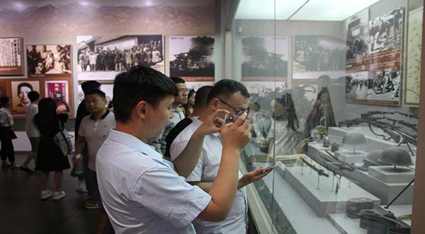 (員工有序參觀紀念館)
