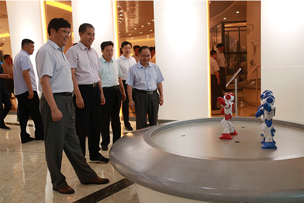 在創(chuàng)客活動中心,趙立新書記一行饒有興致的參觀了綜合實踐區(qū)的28間創(chuàng)客工坊,通過實際觀摩3D打印機操作示范、與智能機器人互動等方式感受創(chuàng)客教育的內(nèi)涵所在,對公司高度重視創(chuàng)客教育建設(shè)的做法給予高度認可。在高科技體驗區(qū),趙立新書記一行觀賞了機器魚、跳舞機器人等人工智能機器人產(chǎn)品,并親自體驗VR海底世界、VR自行車、體感游戲等多項先進體驗互動設(shè)備,感受尖端科研產(chǎn)品給人們的工作生活帶來的改變。