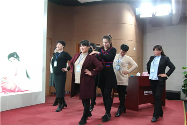 隨后,臨沂大學美術(shù)學院服裝與服飾設(shè)計專業(yè)專業(yè)教師王惠為現(xiàn)場女干部培訓“優(yōu)雅儀態(tài)”,鼓勵大家既要做好政務(wù)工作,也要活出女人的優(yōu)雅。王惠老師親身示范,現(xiàn)場指導,學員們獲益良多。
