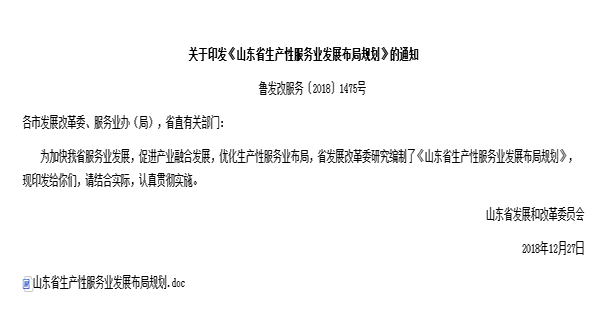 | 國家中印科技國際創(chuàng)新園被列入《山東省生產(chǎn)性服務(wù)業(yè)發(fā)展布局規(guī)劃》 |