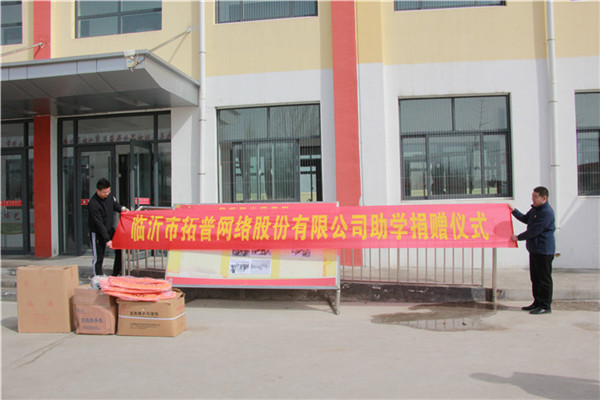 2019年3月21日,臨沂市拓普網(wǎng)絡(luò)股份有限公司與民營企業(yè)高質(zhì)量發(fā)展服務(wù)隊(duì)臨沂二隊(duì)赴沂南縣銅井鎮(zhèn)金橋聯(lián)小舉行“奉獻(xiàn)愛心 捐贈助學(xué)”活動,服務(wù)隊(duì)成員王世臣、李建平以及臨沂市教育局電教館館長徐萬東參加活動。本次活動中,拓普公司為金橋聯(lián)小捐贈了足球、籃球、羽毛球拍等數(shù)百套體育用品。
