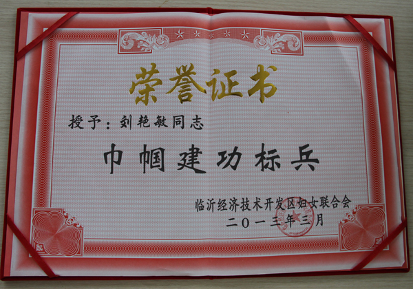 | 董事長劉艷敏被經(jīng)濟技術(shù)開發(fā)區(qū)婦女聯(lián)合會授予“巾幗建功標兵” |