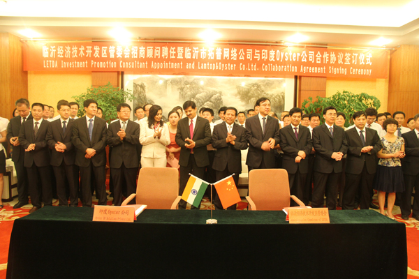 2013年7月20日,“臨沂經(jīng)濟技術(shù)開發(fā)區(qū)管委會招商顧問聘任暨臨沂市拓普網(wǎng)絡(luò)公司與印度Oyster公司合作協(xié)議簽訂儀式”在開發(fā)區(qū)會議室隆重舉行。在儀式上,市人大常委會副主任、開發(fā)區(qū)黨工委書記徐福田為Oyster公司總經(jīng)理Anil Nagpal先生頒發(fā)招商顧問聘書,黨工委副書記張雷與Anil Nagpal簽訂委托招商協(xié)議,公司總經(jīng)理王嵐保與Oyster公司總經(jīng)理Anil Nagpal簽訂戰(zhàn)略合作協(xié)議,開發(fā)區(qū)在家兩委領(lǐng)導(dǎo)出席儀式。