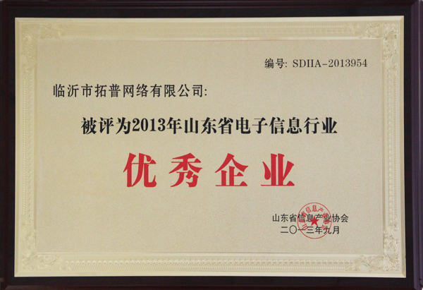 2013年山東省電子信息行業(yè)優(yōu)秀企業(yè)