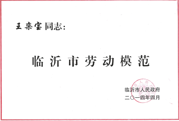 近日,在全市慶祝“五一”國(guó)際勞動(dòng)節(jié)暨勞動(dòng)模范、模范集體表彰大會(huì)上,公司總經(jīng)理王嵐保被臨沂市人民政府授予“臨沂市勞動(dòng)模范”稱(chēng)號(hào)。