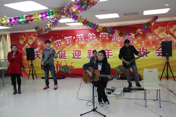 臨沂大學(xué)活動中心火焰琴行一曲吉他彈唱《在劫難逃》拉開了整個聯(lián)歡會的序幕。吉他、電子琴、架子鼓,再加上優(yōu)美的演唱,激發(fā)了觀眾的搖滾熱情。歌曲、舞蹈、笛子獨(dú)奏,精彩的節(jié)目讓觀眾應(yīng)接不暇。其中,拓普公司里印度專家的舞蹈《Indian Rockers》以及歌曲《Why This Kolaveri Di》,讓觀眾領(lǐng)略了印度風(fēng)情。天河智能培訓(xùn)學(xué)校的學(xué)生有創(chuàng)意的表演《小人舞》、《雷人舞》贏得觀眾一致喝彩。