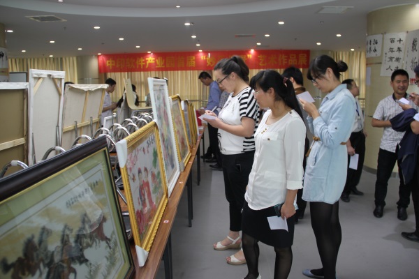 2015年6月1日, 中印軟件產(chǎn)業(yè)園首屆“妙手丹青”藝術(shù)作品展在五樓活動(dòng)室正式拉開帷幕,來自各入園企業(yè)員工精心準(zhǔn)備的70多幅作品現(xiàn)場(chǎng)展出,其中,有書法作品、繪畫作品、十字繡、攝影、郵票等一切可展示的原創(chuàng)藝術(shù)作品,書法既有臨摹各類優(yōu)秀書帖,又不乏出色的創(chuàng)作;繪畫則囊括了國(guó)畫、創(chuàng)意繪畫、素描、油畫等多種類型,內(nèi)容各具特色,又相互呼應(yīng)。此次展出還有9名小朋友的作品,有字帖臨摹、有水墨畫、還有水彩畫,內(nèi)容豐富多彩,充滿童趣。