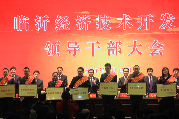 2016年1月15日,臨沂經(jīng)濟(jì)技術(shù)開發(fā)區(qū)領(lǐng)導(dǎo)干部大會(huì)在臨沂國際會(huì)展中心舉行,會(huì)議旨在貫徹黨的十八大和十八屆三中、四中、五中全會(huì)以及習(xí)近平總書記系列講話精神,總結(jié)工作、表彰2015年度創(chuàng)業(yè)功臣、功勛企業(yè)等先進(jìn)個(gè)人、先進(jìn)集體。在此會(huì)議上,公司獲得“2015年度科技創(chuàng)新先進(jìn)單位”榮譽(yù)稱號(hào),公司外籍專家普拉迪普博士、卡瓦利博士獲得“2015年度十佳科技領(lǐng)軍人物”榮譽(yù)稱號(hào)。