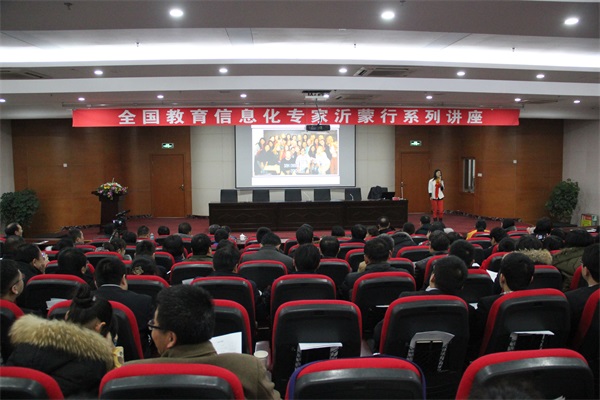 2017年1月5日,臨沂市第三期“全國(guó)教育信息化專家沂蒙行”系列講座在中印軟件產(chǎn)業(yè)園小禮堂成功舉行。本次系列講座特邀美國(guó)圣地亞哥州立大學(xué)教育技術(shù)與傳媒系王敏娟教授作題為“教育技術(shù)現(xiàn)場(chǎng)及其應(yīng)用”、“移動(dòng)學(xué)習(xí)設(shè)計(jì)和增強(qiáng)現(xiàn)實(shí)制作”的報(bào)告,市教科研中心副主任陳為詞、公司副總經(jīng)理朱傳博等領(lǐng)導(dǎo)出席,來(lái)自臨沂市各縣區(qū)共計(jì)400余名校長(zhǎng)及骨干老師參加了本次會(huì)議。