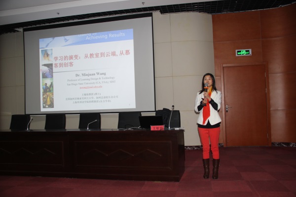 會(huì)議現(xiàn)場(chǎng) 王敏娟教授的報(bào)告,通過(guò)“學(xué)習(xí)的演變、參與式學(xué)習(xí)、教學(xué)設(shè)計(jì)模型”等內(nèi)容的精彩講授,全面深刻的闡釋了課堂教學(xué)、電子學(xué)習(xí)、移動(dòng)學(xué)習(xí)、云學(xué)習(xí)等不同教學(xué)技術(shù)帶來(lái)的教與學(xué)方式的變革。對(duì)中美教學(xué)差異、美國(guó)教育資源開(kāi)發(fā)等老師們提出的問(wèn)題,王教授和老師們做了深刻探討。通過(guò)本次講座,提升了與會(huì)教師的信息化教學(xué)能力,推動(dòng)教育信息化與課堂教學(xué)深度融合。 而由公司建設(shè)運(yùn)營(yíng)的臨沂市智慧教育云平臺(tái)正是順應(yīng)時(shí)代發(fā)展要求,在促進(jìn)臨沂市的教育信息化、均衡化發(fā)展具有重要意義。該平臺(tái)是以新一代信息技術(shù)為支撐的綜合教育云應(yīng)用平臺(tái)。通過(guò)智慧教育云平臺(tái),實(shí)現(xiàn)了優(yōu)質(zhì)教學(xué)資源共享,聚焦了教學(xué)、學(xué)習(xí)革新范式,形成了體系完整、內(nèi)容海量、模式清晰的智慧教育體系。智慧教育云平臺(tái)在各縣區(qū)推廣后取得了良好的效果,促進(jìn)了教育理念的轉(zhuǎn)變、教育方法的更新、科研能力的增強(qiáng),進(jìn)一步推動(dòng)了教育品質(zhì)的全面提升。 王敏娟教授簡(jiǎn)介: 王敏娟,美國(guó)圣地亞哥州立大學(xué),教育技術(shù)與傳媒系教授、密蘇里大學(xué)信息科學(xué)與教育技術(shù)博士。加州州立大學(xué)總校長(zhǎng)辦公室,大型開(kāi)放式資源(MERLOT)項(xiàng)目管理人;上海外國(guó)語(yǔ)大學(xué)特聘教授(東方學(xué)者)。王敏娟教授一直開(kāi)展著前沿的教學(xué)和研發(fā)活動(dòng),從網(wǎng)絡(luò)教學(xué)法,到移動(dòng)學(xué)習(xí),到智慧學(xué)習(xí)和云學(xué)習(xí)的平臺(tái)建構(gòu)。在教育技術(shù)領(lǐng)域的十五年中,她在各類國(guó)際檢索期刊、書籍和國(guó)際會(huì)議上發(fā)表論文80余篇(95%為英語(yǔ)文章)。2011年開(kāi)始,她被美國(guó)教育界評(píng)為最有影響的作者之一,并被公認(rèn)為移動(dòng)和混合式學(xué)習(xí)領(lǐng)域的專家。曾應(yīng)邀在12個(gè)大型國(guó)際會(huì)議上主題或者嘉賓演講。在過(guò)去的6年里,她領(lǐng)導(dǎo)和參加了7個(gè)大型研發(fā)項(xiàng)目。這些項(xiàng)目的資助來(lái)自美國(guó)國(guó)家科學(xué)基金會(huì),美國(guó)教育部,中國(guó)教育部和科技部等,總額高達(dá)500萬(wàn)美金。王敏娟教授也擔(dān)任著4個(gè)檢索期刊的總編,編輯或編委,指導(dǎo)了26名碩士,博士和博士后研究人員。她從教13年,教學(xué)足跡遍布世界各地。她開(kāi)設(shè)的課程具有前沿性,必要性,實(shí)用性,符合學(xué)生們目前的職業(yè)需求并且預(yù)測(cè)著未來(lái)的趨勢(shì)。她出版的兩本暢銷勵(lì)志書籍,影響了世界各地的青年學(xué)子。